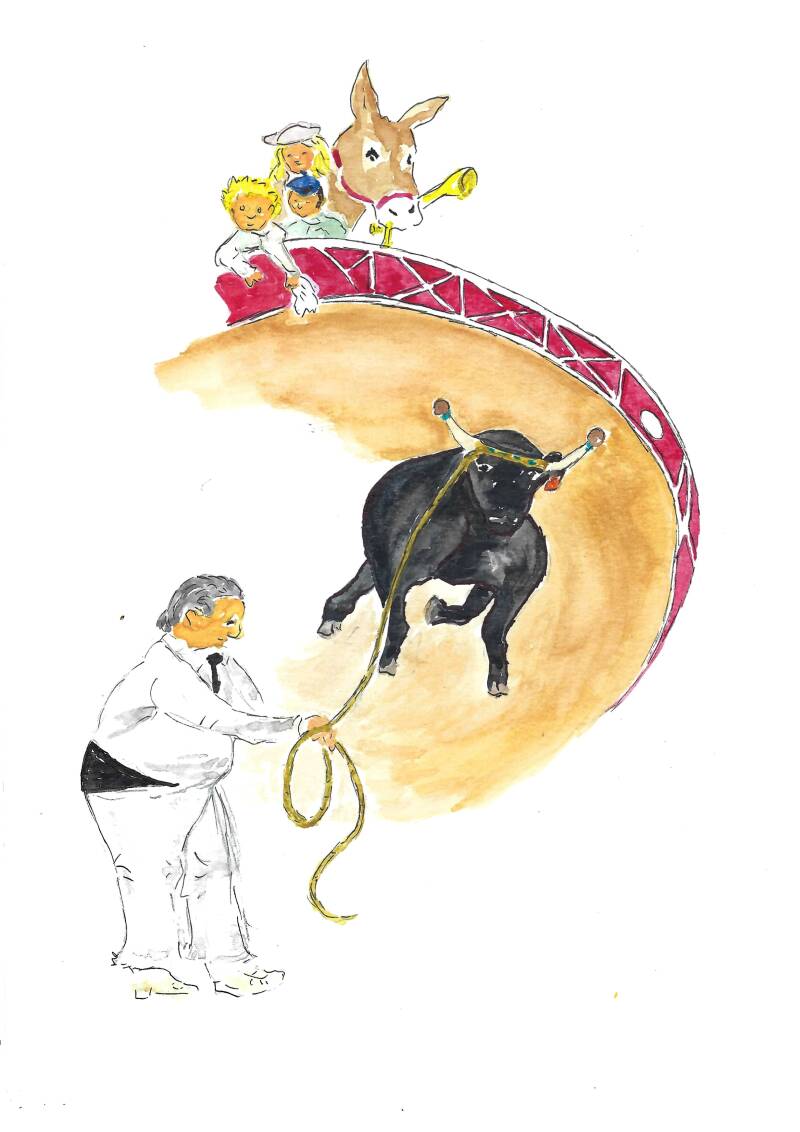 Pipo, déjà peu courageux, ne se risque pas sur la piste de l'arène,